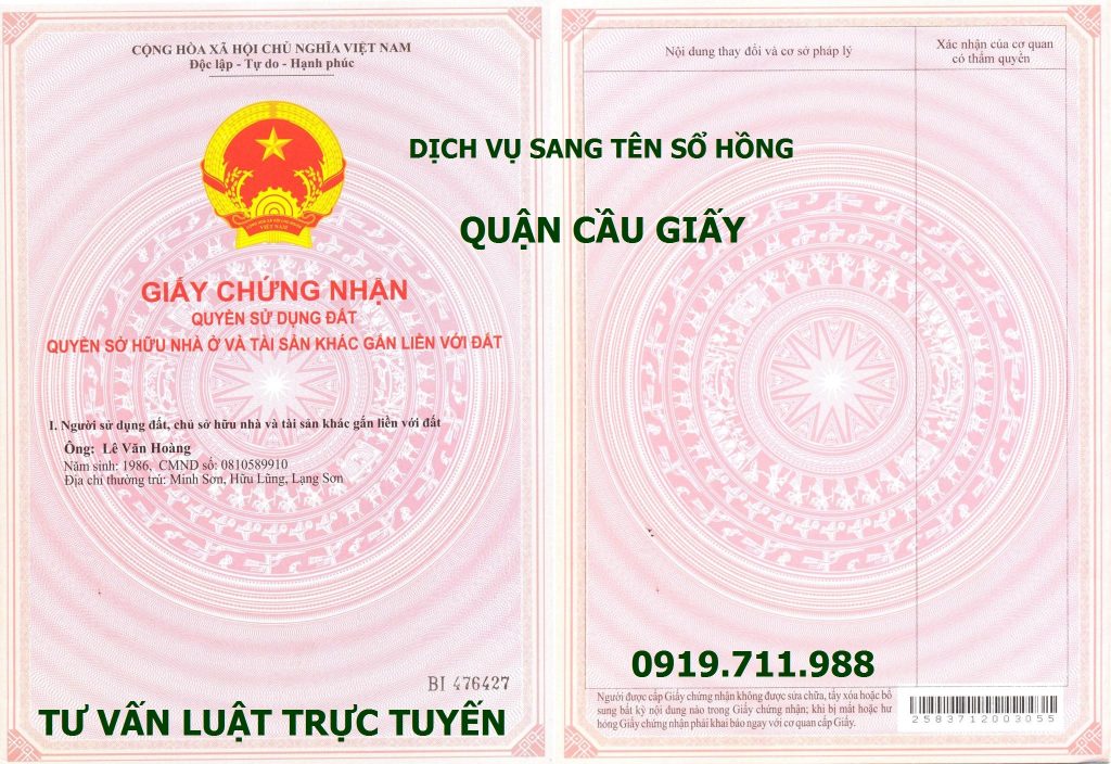 Dịch vụ công chứng sang tên sổ hồng quận Cầu Giấy nhanh gọn, chi phí thấp nhất, hỗ trợ tư vấn miễn phí theo yêu cầu tại nhà Nội dung dịch vụ sang tên sổ hồng quận Cầu Giấy (1) Tư vấn hành lang pháp lý liên quan đến thủ tục sang tên sổ hồng; (2) Sau […]