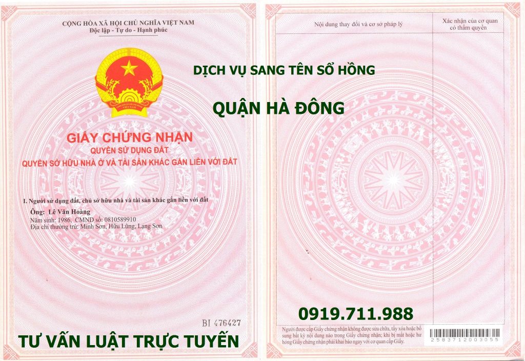 Tư vấn trực tuyến chuyên cung cấp dịch vụ sang tên sổ hồng quận Hà Đông, tư vấn miễn phí, hỗ trợ dịch vụ nhanh gọn, chi phí thấp Nội dung dịch vụ sang tên sổ hồng quận Hà Đông (1) Tư vấn hành lang pháp lý liên quan đến thủ tục sang tên sổ hồng; […]