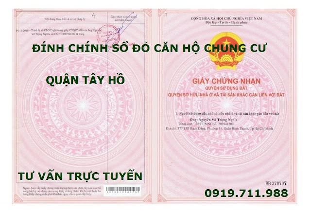 Hỗ trợ đính chính sổ đỏ căn hộ chung cư quận Tây Hồ giá rẻ, tư vấn đính chính sổ đỏ căn hộ chung cư quận Tây Hồ nhanh