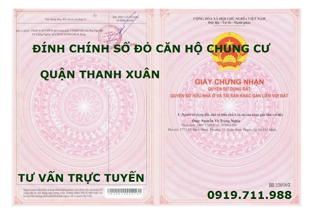 ĐÍNH CHÍNH SỔ ĐỎ CĂN HỘ CHUNG CƯ QUẬN THANH XUÂN
